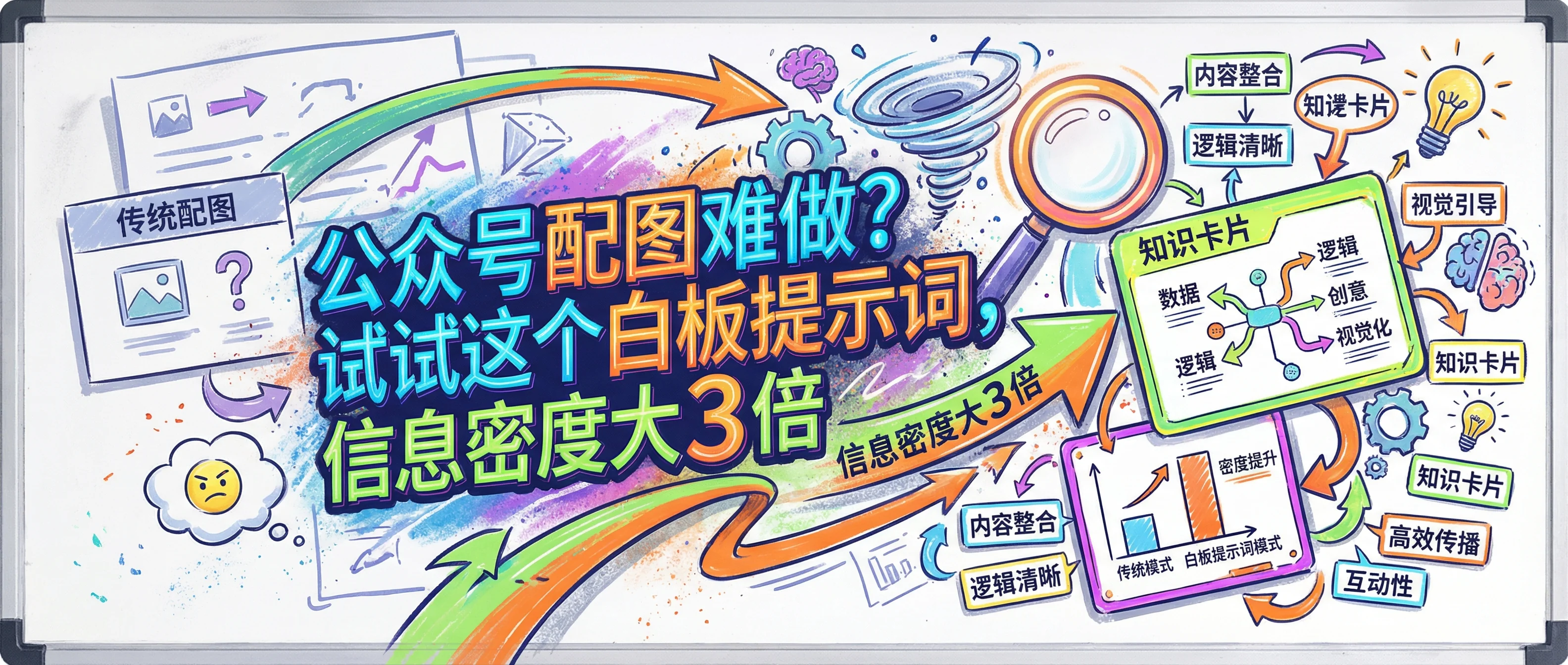 本文介绍Nano Banana Pro的白板风格提示词,适用于生成信息密度高、专业感强的知识卡片、教程配图和概念解释图。与手写风格(适合封面、笔记)相比,白板风格能更好地呈现多层级内容,但需要输入足够多的文本(至少50字)。文章提供了基础模板和三个实用案例,帮助内容创作者高效制作配图。